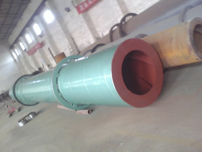 該機主要由回轉體、揚料板、傳動裝置、支撐裝置及密封圈等部件組成。干燥機是一個與水平方向略成傾斜的圓筒,物料從較高的一端加入,高溫熱煙氣與物料并流進入筒體,隨著筒體的轉動,物料由于重力的作用運行到較低一端。在圓筒內壁上裝有抄板,把物料抄起又灑下,使物料與氣流的接觸表面增大,以提高干燥速率并促進物料前行。干燥后的產品從底端下部收集。